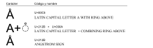 For compatibility reasons, Unicode includes the formal symbol at U+212B Å ANGSTROM SIGN (HTML Å). However, the ångström sign is also normalized into U+00C5 Å LATIN CAPITAL LETTER A WITH RING ABOVE (HTML Å · Å, Å)[20] The Unicode consortium recommends to use the regular letter (00C5).