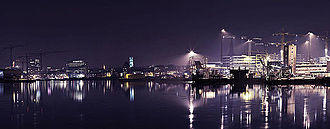 Both the skyline and land use of the inner city is changing as former industrial sites are being redeveloped into new city districts and neighbourhoods. Starting in 2008, the former docklands known as De Bynære Havnearealer (The Peri-urban Harbour-areas), and closest to the city seaside, are being converted to new mixed use districts. It is among the largest harbourfront projects in Europe. The northern part dubbed Aarhus Ø (Aarhus Docklands) is almost finished as of 2018, while the southern district dubbed Sydhavnskvarteret (The South-harbour neighbourhood) is only starting to be developed.[69][70][71] The adjacent site of Frederiks Plads at the former DSB repair facilities have been under construction since 2014 as a new business and residential quarter.[72][73][74] The main bus terminal close by is planned to be moved to the central railway station and the site will be redeveloped to a new residential neighbourhood.[75][76] Elsewhere in the inner city, the site of the former Ceres breweries was redeveloped in 2012-2019 as a new mixed use neighbourhood known as CeresByen.[77]
