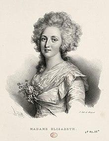 Élisabeth of France (Élisabeth Philippe Marie Hélène de France;[1][2] 3 May 1764 – 10 May 1794), known as Madame Élisabeth, was a French princess and the youngest sibling of King Louis XVI. She remained beside the king and his family during the French Revolution and was executed at Place de la Révolution in Paris during the Terror. She is regarded by the Roman Catholic Church as a martyr and is venerated as a Servant of God.[3][4]