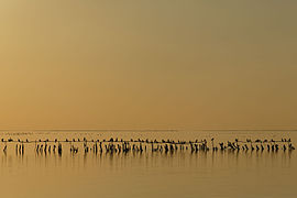The lake is also an important place for rest and food for migratory birds, and it also has a population of the greater flamingo.[1] Because of its importance for wild birds, the Étang de Vaccarès with its surrounding wetlands has been protected as a nature reserve since 1927, and in 1972 it was incorporated into the Parc Régional de Camargue.