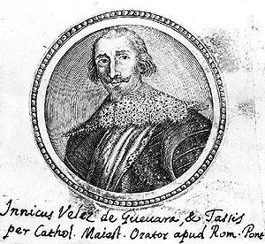 Íñigo Vélez de Guevara, seventh Count of Oñate and Count of Villamediana (1566 in Salinillas de Buradón, Alava; October 31, 1644 in Madrid) was a Spanish political figure. He played an important role in the Thirty Years War.