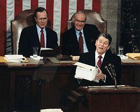 The 100th United States Congress was a meeting of the legislative branch of the United States federal government, composed of the United States Senate and the United States House of Representatives. It met in Washington, D.C. from January 3, 1987, to January 3, 1989, during the last two years of Ronald Reagan's presidency. The apportionment of seats in the House of Representatives was based on the Twentieth Census of the United States in 1980. Both chambers had a Democratic majority.