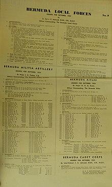 - ^ Bermuda Local Forces Orders No. 9, for October, 1954.