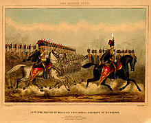 The regiment was sent to India in 1846 and then saw action at the Siege of Sevastopol in winter 1854 and at the Battle of Eupatoria in February 1855 during the Crimean War.[13] In 1861, it was renamed the 10th (The Prince of Wales's Own) Royal Hussars.[1] The regiment saw action at the Battle of Ali Masjid in November 1878 during the Second Anglo-Afghan War[21] and at the First and Second Battles of El Teb in February 1884 during the Mahdist War.[22]