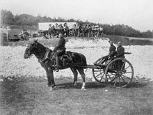 After the war the regiment saw brief service in Ireland. On 22 June 1921 it provided the royal escort for King George V when he opened the first Parliament of Northern Ireland. Two days later the train carrying the detachment back to the south was mined, killing and wounding twenty-four hussars and eighty of their horses.[27] The regiment returned to the UK in 1921 and was retitled the 10th Royal Hussars (Prince of Wales's Own).[1] Deploying to Egypt in 1929 and India in 1930, the regiment returned to the UK in 1936 and began the process of mechanisation.[1] It was assigned to the 2nd Armoured Brigade of the 1st Armoured Division in 1939. At the same time, it became part of the Royal Armoured Corps.[1]