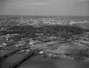 In 1956, federal and regional transportation planners proposed an Inner Loop Expressway, one of three circumferential beltways for the District of Columbia.[19] The innermost beltway would have formed a flattened oval about a mile in radius centered on the White House.[19] The middle beltway would have formed an arc along the northern portion of the city, running from the proposed Barney Circle Freeway terminus near Robert F. Kennedy Memorial Stadium to near 37th Street NW at the north end of Georgetown.[19]