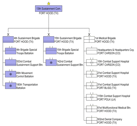- ^ Mollie Miller (24 February 2006). "13th COSCOM becomes the 13th Sustainment Command". The Killeen Daily Herald.