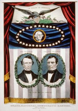 Four major candidates vied for the presidential nomination- Lewis Cass of Michigan, the nominee in 1848, who had the backing of northerners in support of the Compromise of 1850; James Buchanan of Pennsylvania, popular in the South as well as in his home state; Stephen A. Douglas of Illinois, candidate of the expansionists and the railroad interests; and William L. Marcy of New York, whose strength was centered in his home state. Cass led on the first nineteen ballots of the convention, but was unable to win the necessary two-thirds majority. Buchanan pulled ahead on the twentieth ballot, but he too was unable to win a two-thirds majority. Pierce won votes for the first time on the 35th ballot, and was nominated almost unanimously on the 49th ballot.