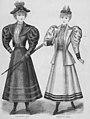 - 1899 fashion plate shows the narrow, gored skirt and more natural shoulder of the start of the 20th century (as well as the results of "S-bend" corseting).
