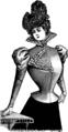 Fashionable women's clothing styles shed some of the extravagances of previous decades (so that skirts were neither crinolined as in the 1850s, nor protrudingly bustled in back as in the late 1860s and mid-1880s, nor tight as in the late 1870s), but corseting continued unmitigated, or even slightly increased in severity. Early 1890s dresses consisted of a tight bodice with the skirt gathered at the waist and falling more naturally over the hips and undergarments than in previous years. Puffy leg-of-mutton sleeves (also known as gigot sleeves) made a comeback, growing bigger each year until reaching their largest size around 1895.[2]