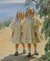 - Two women in Watteau-backed tea gowns with high sashed waists, 1899.