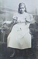 - Catherine Vlasto wears a white dress with puffed elbow-length sleeves and ribbon bows. Her hair is parted in the center and poufed casually at her temples, 1897.