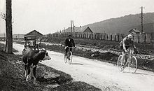 The battle for the general classification seriously began in the tenth stage. That tenth stage was a tough stage, and has been labeled as the toughest stage ever in the Tour de France;[6] 76 cyclists started the race at midnight, and more than seventeen hours later, Lucien Buysse arrived as the winner. After twenty-five minutes, the next cyclist came in. After one hour, only 10 cyclists had finished, so the Tour de France organisation sent cars to look for the cyclists.[2] At midnight, 47 cyclists had arrived, some of them in buses.[7] The race officials decided to allow the cyclists 40% more time than the winning cyclist.[8] Later that night, 54 cyclists had crossed the finish line, and the remaining 22 cyclists were gathered; they were no longer in the race.[2] After the stage, the race officials were approached by a man who claimed that he had brought some cyclists to the finish line with his car, but that the cyclists had not paid him. The officials decided not to punish the cyclists, and paid the driver.[8] Gustaaf Van Slembrouck, wearing the yellow jersey as leader of the general classification, officially finished in 20th place, two hours behind Buysse. Year later, Van Slembrouck said that during the stage he had said to Tour organiser Desgrange that he was giving up, and Desgrange ordered a car to bring Van Slembrouck to the finish.[6] The same stage with the same mountains had also been in the 1913 Tour de France; then the weather was better, and winner Philippe Thys only took 13 hours to finish the stage.[2] One of the cyclists who had not finished the stage was the defending champion, Ottavio Bottecchia.[7]