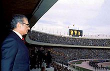 On 1 September 1974, the Seventh Asian Games were officially opened. The list of the guests included— Shah of Iran Mohammad-Reza Pahlavi, then Prime Minister of Iran Amir Abbas Hoveida, cabinet members of Iranian Government, President of Israel Ephraim Katzir, President of South Korea Park Chung-hee, King of Thailand Bhumibol Adulyadej, diplomatic corps and representatives of participating Asian NOCs. The Aryamehr Stadium was filled with an estimated 100,000 spectators. After a speech by the president of Asian Games Federation, HRH Yadavendra Singh, Mohammad Reza Shah officially opened the Games. The ceremony featured a card stunt performed by students of Chulalongkorn University in Thailand.[8]