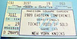 A ticket for Game 1 of the 1989 Eastern Conference Semifinals between the Chicago Bulls and the New York Knicks.