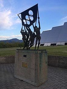 In February 1999, one year after the Games, the IOC awarded the Nagano the Olympic Cup, and presented the city a sculpture of stylized athletes raising the Olympic Flag by the Swiss artist Nag Arnoldi.[b 1]