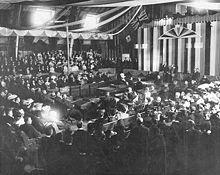 The 1st Alberta Legislative Assembly came about after Alberta entered Confederation with the Alberta Act. The assembly met for the first time in 1906 under a strong Alberta Liberal Party majority. Construction of the Alberta Legislature Building would not begin until 1907, so the assembly would meet in the newly completed McKay Avenue School for the first two sessions of the First Legislative Assembly of Alberta in 1906 and 1907.[2] Important bills passed in those sessions include confirming Edmonton as the provincial capital, the founding of the University of Alberta, establishment of provincial courts, and the provision of charters for several railway companies.[2]