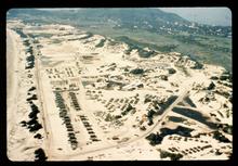 The task force began arriving at Vung Tau between April and June 1966.[5] From 17 May to 15 June, US and Australian forces secured the area around Nui Dat during Operation Hardihood, deploying two battalions of the US 173rd Airborne Brigade and an element of 1 RAR.[25] 5 RAR deployed from Vung Tau the same day and was tasked with clearing any Viet Cong found in an area 6,000 metres (6,600 yd) east and north-east of Nui Dat.[26] 1 ATF occupied Nui Dat from 5 June, with Jackson flying-in with his tactical headquarters to take command.[25] The plan to operate independently resulted in significant self-protection requirements and 1 ATF's initial priorities were to establish a base and ensure its own security.[27] Meanwhile, Wilton's decision to occupy Nui Dat rather than co-locate 1 ATF with its logistic support at Vung Tau allowed the task force to have a greater impact but resulted in additional manpower demands to secure the base.[16] Indeed, the security requirements of an understrength brigade in an area of strong Viet Cong activity utilised up to half the force, limiting its freedom of action.[28] As part of the occupation all inhabitants within a 4,000-metre radius had been removed and resettled nearby. A protective security zone was then established, the limit of which was designated Line Alpha, and a free-fire zone declared. Although unusual for allied installations in Vietnam, many of which were located near populated areas, the Australians hoped to deny the Viet Cong observation of Nui Dat and afford greater security to patrols entering and exiting the area.[29][30]