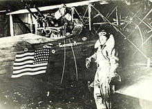 Bad weather and engine trouble with the SPAD aircraft plagued the squadron upon its arrival at the front, and on 12 April, the first contact with enemy aircraft was made, when Lt Coyle was attacked by three German planes. He escaped, his plane having several bullet holes. The work done by the squadron in its early days of combat operations was judged to be of a high order. A great deal of valuable intelligence was obtained. This was recognized when French General Passage, Chief of Staff of the 32d French Corps, awarded the "Croix de guerre" to several aircrews for exceptional bravery in combat.[9]