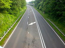 2+1 road is a specific category of three-lane road, consisting of two lanes in one direction and one lane in the other, alternating every few kilometres, and separated usually with a steel cable barrier. The second lane allows faster-moving traffic to overtake slower vehicles at regular intervals. Traditional roads of at least 10 metres (33 ft) width can be converted to 2+1 roads and reach near-motorway safety levels at a much lower cost than an actual conversion to motorway or dual carriageway.