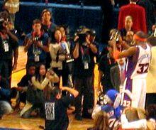 Said to be the most exciting Rookie Challenge in history due to all the highlight-reel dunks. Much of the hype centered on rookie phenoms LeBron James and Carmelo Anthony, who had 33 and 17 points respectively. Amar'e Stoudemire set a Rookie Challenge record with 36 points (it has since been broken).