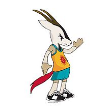 The emblem of the 15th Asian Games is an image of an athlete in motion which represents fearless manner of a sportsperson in face of challenges and obstacles. The colours used in the emblem represent Qatar's landscape. Yellow represents the crescent-shaped sand dunes of the desert, blue represents the calm sea of the Gulf and red represents the sun and warm spirit of Asia.[40]