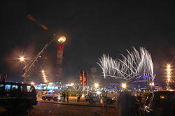 The opening ceremony was viewed by 50,000 spectators in the Khalifa International Stadium, and famous guests such as the International Olympic Committee's Jacques Rogge, Iranian President Mahmoud Ahmadinejad, Palestinian Prime Minister Ismail Haniyeh and Syrian President Bashar Assad.[63] The opening ceremony was directed by David Atkins, who conducted the 2000 Summer Olympics opener.[64]