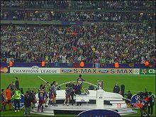Barcelona captain Carles Puyol collected the trophy from UEFA president Lennart Johansson as Barcelona celebrated their second European Cup triumph.[21] As a result of winning the UEFA Champions League, Barcelona would face Sevilla, the winners of the UEFA Cup, in the UEFA Super Cup. The subsequent match, played on 25 August 2006, was won 3–0 by Sevilla.[29] Barcelona's victory meant they would also participate in the FIFA Club World Cup. Receiving a bye in the first round, they beat Club América 4–0 in the semi-finals to progress to the final where they faced Copa Libertadores champions Internacional, who won 1–0.[30]