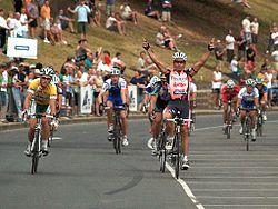 Robbie McEwen wins the Stage 3 criterium from overall leader Mark Renshaw.
