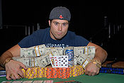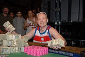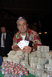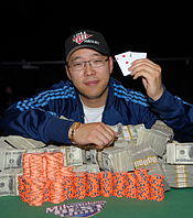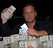 With 54,288 total entries and a combined prize pool of $159,796,918, the 2007 WSOP was the largest series of poker tournaments ever.[3] For many, winning a share of the prize pool was all that mattered, while others sought the glory associated with winning a bracelet. This dichotomy could not have been illustrated better than a deal negotiated at the Senior Championship event. Tony Korfman wanted the money while Ernest Bennett wanted the glory. Rather than leave their fates to chance, the two of them ensured they got what they wanted. In exchange for splitting the prize money, Korfman agreed to let Bennett win the bracelet.[4] After winning $8.25 million in the Main Event, Jerry Yang and his wife retired.[5] "My winning today also means a lot to me, because I know that I can use this money to do a lot of good for other people out there," Yang said[6] before donating over a million dollars to charity.[7] Upon winning his record eleventh bracelet, Phil Hellmuth said, "the bracelets have always been a really huge deal, to me more than the other guys, because I knew that they represented history."[8]