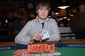 - Winning hand: A♠ Q♥ 4♠ A♣ X A♦ 4♣See note