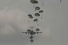As the organization of the Army changed following Vietnam, the 20th Engineer Brigade was again reactivated at Fort Bragg, North Carolina as an airborne brigade on 21 June 1974.[2] Assigned as a subordinate command of the XVIII Airborne Corps, which comprised one airborne combat engineer battalion, a heavy construction battalion and four separate companies. Additionally, the 283rd Engineer Detachment (Terrain Analysis) provided terrain intelligence needs of the brigade's mission.[2] Since that time the brigade and its subordinate units supported the XVIII Airborne Corps, fulfilling critical combat engineer, construction, topographic, and bridging missions.[7] In the wake of Feb.1976 Guatemala Earthquake, the brigade participated in humanitarian aid and rebuilding efforts of a major highway, CA-9. The brigade participated in the recovery efforts following the Great Lakes Blizzard of 1977. Over 300 members of the unit were dispatched to New York State to help with recovery efforts.[2] As requirements and the engineer force structure changed, the brigade inactivated the 548th Engineer Battalion (Combat)(Heavy) in 1987 and activated the 37th Engineer Battalion (Combat)(Airborne). In 1989, the 30th Engineer Battalion (Topographic) was added to the brigade.[2] Over the years, the brigade has provided engineer support to XVIII Airborne Corps and other Army commands. In addition to training, it has deployed in support of operations across the entire spectrum of conflict from disaster relief to combat operations.[2]