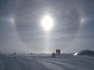 22° solar halo with parhelia and rare lower tangent arc at South Pole, 12 January 2009.