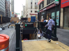 In late 2014, construction began to install ADA-accessible elevators in the station. To make room for the elevator that serves the northbound platform, the northbound staircase on the northeastern corner of Park Avenue South and 23rd Street had to be demolished, and was relocated a few feet down the street.[17] The relocated staircase opened in August 2015. The construction was completed in December 2016, making the station fully ADA-compliant.[18]