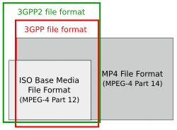 The 3GP file format stores video streams as MPEG-4 Part 2, H.263, or MPEG-4 Part 10 (AVC/H.264), and audio streams as AMR-NB, AMR-WB, AMR-WB+, AAC-LC, HE-AAC v1 or Enhanced aacPlus (HE-AAC v2). 3GPP allowed use of AMR and H.263 codecs in the ISO base media file format (MPEG-4 Part 12), because 3GPP specified the usage of the Sample Entry and template fields in the ISO base media file format as well as defining new boxes to which codecs refer. These extensions were registered by the registration authority for code-points in ISO base media file format ("MP4 Family" files).[11] [12] For the storage of MPEG-4 media specific information in 3GP files, the 3GP specification refers to MP4 and the AVC file format, which are also based on the ISO base media file format. The MP4 and the AVC file format specifications described usage of MPEG-4 content in the ISO base media file format.[8]