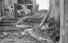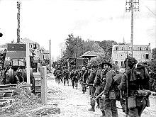 On 5 September, 3rd Canadian overran the Fortress of Mimoyecques, revealing the infrastructure for the unknown V-3 cannon destroyed by the Tallboy bombs in July.[10] Between 17–22 September 1944, 3rd Canadian were intimately involved in the liberation of Boulogne-sur-Mer, during which a French civilian guided the Canadians to a "secret passage" leading into the walled old town and by-passing the German defenders.[11] By 1 October 1944, the Division had also liberated Calais.