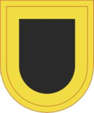 The orange and black flash, seen on the right, was first worn by the 5th Infantry Detachment (Pathfinder), matching the colors of the shoulder sleeve insignia of the U.S. Army Aviation Center and School to which the unit was assigned.[8] The 5th wore this patch with a black and gold Airborne tab.