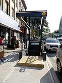 This underground station has four tracks and two side platforms.[32] The R stops here at all times;[33] some rush-hour W trains stop here in the peak direction;[34] and the N stops here during late nights, but uses the center express tracks to bypass the station during daytime hours.[35]