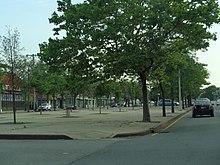 The construction of the Queens Boulevard subway line offered the possibility of quick commutes to the central business district in Midtown Manhattan. In the late 1920s, speculators, upon learning the route of the proposed line, quickly bought up property on and around Queens Boulevard, and real estate prices soared, and older buildings were demolished in order to make way for new development.[30][39] In order to allow for the speculators to build fifteen-story apartment buildings, several blocks were rezoned.[40] They built apartment building in order to accommodate the influx of residents from Midtown Manhattan that would desire a quick and cheap commute to their jobs.[30][41] Since the new line had express tracks, communities built around express stations, such as in Forest Hills and Kew Gardens became more desirable to live. With the introduction of the subway into the community of Forest Hills, Queens Borough President George U. Harvey predicted that Queens Boulevard would become the "Park Avenue of Queens".[30] With the introduction of the subway, Forest Hills and Kew Gardens were transformed from quiet residential communities of one-family houses to active population centers.[38] Following the line's completion, there was an increase in the property values of buildings around Queens Boulevard.[42] For example, a property along Queens Boulevard that would have sold for $1,200 in 1925, would have sold for $10,000 in 1930.[43] The population of Forest Hills in 1930 was 18,000, having increased to 100,000 in 1965.[44]