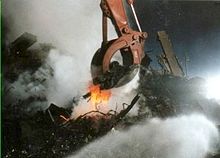 Jones also said that molten steel found in the rubble was evidence of explosives, as an ordinary airplane fire would not generate enough heat to produce this, citing photographs of red debris being removed by construction equipment, but Blanchard said that if there had been any molten steel in the rubble any excavation equipment encountering it would have been immediately damaged.[84] Other sampling of the pulverized dust by United States Geological Survey and RJ Lee did not report any evidence of thermite or explosives. It has been theorized the "thermite material" found was primer paint.[88] Dave Thomas of Skeptical Inquirer magazine, noting that the residue in question was claimed to be thermotic because of its iron oxide and aluminum composition, pointed out that these substances are found in many items common to the towers. Thomas said that in order to cut through a vertical steel beam, special high-temperature containment must be added to prevent the molten iron from dropping down, and that the thermite reaction is too slow for it to be practically used in building demolition. Thomas pointed out that when Jesse Ventura hired New Mexico Tech to conduct a demonstration showing nanothermite slicing through a large steel beam, the nanothermite produced copious flame and smoke but no damage to the beam, even though it was in a horizontal, and therefore optimal, position.[89]