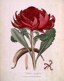 A Specimen of the Botany of New Holland, also known by its standard abbreviation Spec. Bot. New Holland, was the first published book on the flora of Australia.[1] Written by James Edward Smith and illustrated by James Sowerby, it was published by Sowerby in four parts between 1793 and 1795. It consists of 16 colour plates of paintings by Sowerby, mostly based on sketches by John White, and around 40 pages of accompanying text. It was presented as the first volume in a series, but no further volumes were released.[2]