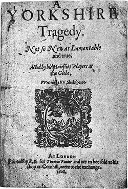 A Yorkshire Tragedy is an early Jacobean era stage play, a domestic tragedy printed in 1608. The play was originally assigned to William Shakespeare, though the modern critical consensus rejects this attribution, favouring Thomas Middleton.