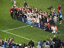 Milan's next period of success came under another former player, Carlo Ancelotti. After his appointment in November 2001, Ancelotti took Milan to the 2003 Champions League final, where they defeated Juventus on penalties to win the club's sixth European Cup.[28] The team then won the Scudetto in 2003–04 before reaching the 2005 Champions League final, where they were beaten by Liverpool on penalties despite leading 3–0 at half-time.[28] Two years later, the two teams met again in the 2007 Champions League final, with Milan winning 2–1 to lift the title for a seventh time.[28][29] The team then won its first FIFA Club World Cup in December 2007.[30] In 2009, after becoming Milan's second longest serving manager with 420 matches overseen,[30] Ancelotti left the club to take over as manager at Chelsea.