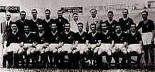 The purpose of the merger was to give the Italian capital a strong club to rival that of the more dominant Northern Italian clubs of the time.[2] The only major Roman club to resist the merger was Lazio because of the intervention of the army General Vaccaro, a member of the club and executive of Italian Football Federation. All three founding clubs were relegated, but the fascist-aligned FIGC bet over the capacity of the new team to give a stronger representation to the capital of Italy, and they were awarded a wild card for the Divisione Nazionale, the Serie A forerunner. The club played its earliest seasons at the Motovelodromo Appio stadium,[5] before settling in the working-class streets of Testaccio, where it built an all-wooden ground Campo Testaccio; this was opened in November 1929.[6] An early season in which Roma made a large mark was the 1930–31 championship, where the club finished as runners-up behind Juventus.[7] Captain Attilio Ferraris, along with Guido Masetti, Fulvio Bernardini and Rodolfo Volk, were highly important players during this period.[8]