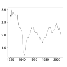 The share of advertising spending relative to GDP has changed little across large changes in media since 1925. In 1925, the main advertising media in America were newspapers, magazines, signs on streetcars, and outdoor posters. Advertising spending as a share of GDP was about 2.9 percent. By 1998, television and radio had become major advertising media; by 2017, the balance between broadcast and online advertising had shifted, with online spending exceeding broadcast.[45] Nonetheless, advertising spending as a share of GDP was slightly lower – about 2.4 percent.[46]