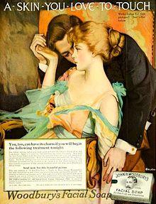 At the turn of the 20th century, advertising was one of the few career choices for women. Since women were responsible for most household purchasing done, advertisers and agencies recognized the value of women's insight during the creative process. In fact, the first American advertising to use a sexual sell was created by a woman – for a soap product. Although tame by today's standards, the advertisement featured a couple with the message "A skin you love to touch".[33]