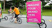 - Billboards, also known as hoardings in some parts of the world, are large structures located in public places which display advertisements to passing pedestrians and motorists. Most often, they are located on main roads with a large amount of passing motor and pedestrian traffic; however, they can be placed in any location with large numbers of viewers, such as on mass transit vehicles and in stations, in shopping malls or office buildings, and in stadiums. The form known as street advertising first came to prominence in the UK by Street Advertising Services to create outdoor advertising on street furniture and pavements. Working with products such as Reverse Graffiti, air dancers and 3D pavement advertising, for getting brand messages out into public spaces. Sheltered outdoor advertising combines outdoor with indoor advertisement by placing large mobile, structures (tents) in public places on temporary bases. The large outer advertising space aims to exert a strong pull on the observer, the product is promoted indoors, where the creative decor can intensify the impression. Mobile billboards are generally vehicle mounted billboards or digital screens. These can be on dedicated vehicles built solely for carrying advertisements along routes preselected by clients, they can also be specially equipped cargo trucks or, in some cases, large banners strewn from planes. The billboards are often lighted; some being backlit, and others employing spotlights. Some billboard displays are static, while others change; for example, continuously or periodically rotating among a set of advertisements. Mobile displays are used for various situations in metropolitan areas throughout the world, including: target advertising, one-day and long-term campaigns, conventions, sporting events, store openings and similar promotional events, and big advertisements from smaller companies.
