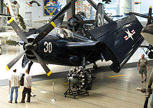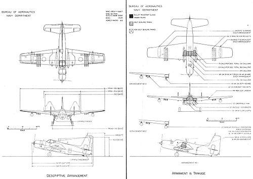 The original design concept for the aircraft that would become the Guardian, the XTB2F of 1944, was for a twin-engined aircraft with a 3,600 lb (1,600 kg) warload and a range of 3,700 mi (5,950 km).[3] This was considered to be too large for practical use from an Essex-class aircraft carrier, and was cancelled in 1945, replaced by a modified Grumman F7F Tigercat, the XTSF-1.[4]