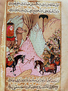 Her father, Abu Bakr, became the first caliph to succeed Muhammad, and after two years was succeeded by Umar. During the time of the third caliph Uthman, Aisha had a leading part in the opposition that grew against him, though she did not agree either with those responsible for his assassination or with the party of Ali.[15] During the reign of Ali, she wanted to avenge Uthman's death, which she attempted to do in the Battle of the Camel. She participated in the battle by giving speeches and leading troops on the back of her camel. She ended up losing the battle, but her involvement and determination left a lasting impression.[11] Because of her involvement in this battle, Shia Muslims have a generally negative view of Aisha.