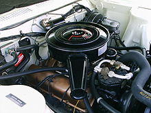 The AMC 360 has a displacement of 359.80 cu in (5,896.1 cc).[20] The 2-barrel produced 235 hp (175 kW; 238 PS) to 245 hp (183 kW; 248 PS) in 1970 to early 1971 while the 4-barrel produced 285 hp (213 kW; 289 PS) to 295 hp (220 kW; 299 PS), 175 hp (130 kW; 177 PS) to 220 hp (164 kW; 223 PS) from mid-1971 to 1975, 140 hp (104 kW; 142 PS) to 180 hp (134 kW; 182 PS) in 1976, 129 hp (96 kW; 131 PS) in 1977, and 160 hp (119 kW; 162 PS) from 1978 to 1991.[21]